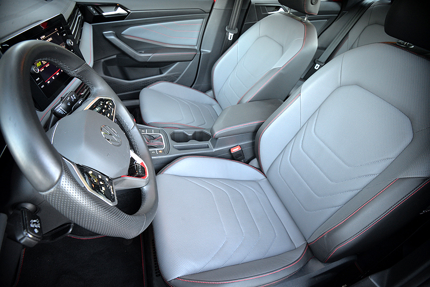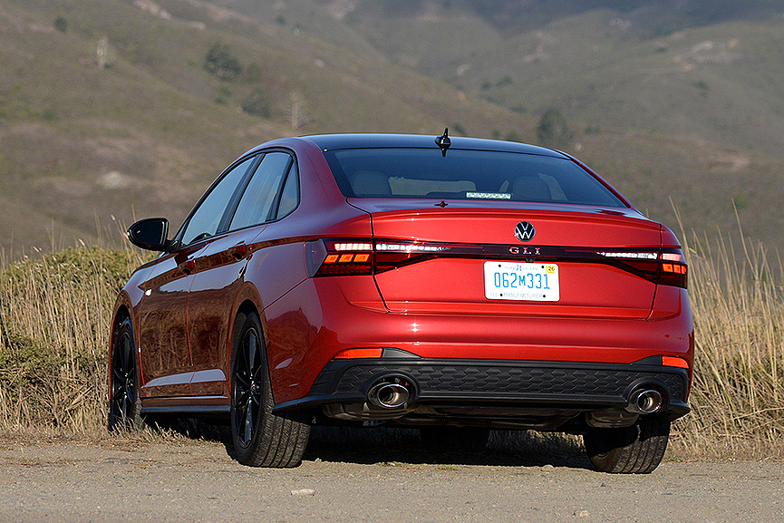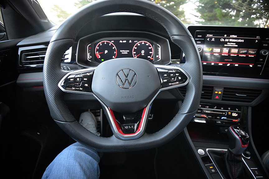 VW touts the GLI as a "the GTI with a trunk." In view of the $7,000 price savings of the GLI over the GTI, I would also call it "the GTI with its own bank account." There's really very little reason to opt for the hatchback over the sedan when you consider performance, price or appearance. Our Kings Red Metallic (optional $455) Jetta looked especially snazzy with the $650 optional GLI Black Package that darkened the alloy rims, mirror caps, and roof. For 2025, the Jetta benefits from a restyled front fascia and grill conjoined by a new full-width front light bar. The tail also benefits from new full-width tail lights and a revised trunk lid. The subtle stylistic upgrades continue inside the spacious cabin, with very supportive front bucket seats upholstered in "Grigio and Titan Black Leather." Red stitching highlights the black and gray seats. The digital instrument binnacle is business-like and dazzlingly bright. In particular, we enjoyed the vivid red line illumination of the tachometer face. The dashboard has been honed to such a fine degree of simplicity that even the newly introduced haptic HVAC controls are easy to modulate. In sum, a 2025 GLI may soon be joining our collection of vintage Porsches.