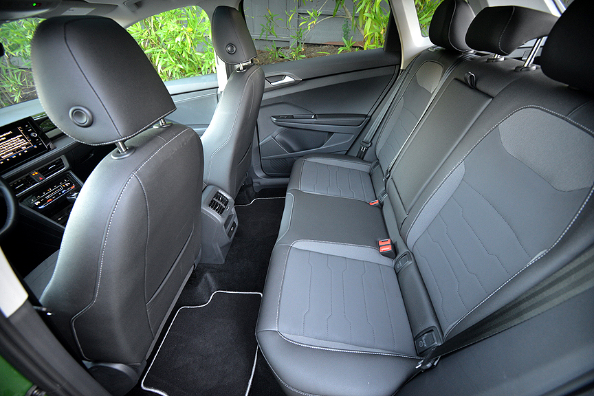 When is black green? When VW paints its 2025 "Taos SE Black" Bright Moss Green, a startling chromatic shade that constantly alters the look of the Taos. In bright sunlight the little SUV's paint positively pulsates. Cloudy days throttle the Moss Green back a few notches to Merely Vivid. VW's "Deep Black" agenda for the Taos blackens the A pillars, roof, mirror caps, rocker panels, rear spoiler, and alloy rims - subdued items that make the wild paint pop all the more. As a final touch, VW extends the Johnny Cash look to the interior, covering the seats with black "CloudTex Leatherette." Charcoal cloth seating surfaces grace the supportive front buckets as well as the (60/40) split row rear bench. One particularly nice touch is VW's decision to finish the large front grill in matte black, with piano black flourishes highlighting its contours. This SE Black edition marks it as one of VW's best ever stylistic efforts.