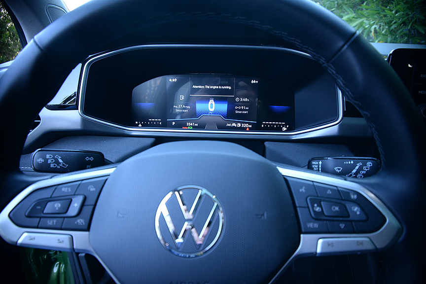 And yet, despite all these apparent negatives, the SE Black Taos proved to be one of my favorite back roads rides of the entire year. Perhaps you've heard of the SCCA road racing class called Formula Vee - that's "Vee" as in VW. These lightweight open-wheel race cars are very slow in a straight line, but once they get up to speed, they tend to retain and augment that speed in ways you would think impossible with just 65hp. This underpowered Taos provides the same kind of cheap thrills. Despite its comparatively low horsepower motor, indifferent tires, and lack of paddle shift involvement, the 3,305lb Taos proved to be a real blast to drive on curvy back roads. Credit light weight, responsive steering, and supportive sport seats for the fun. The Taos felt perfectly balanced, and as responsive to input as its ancestral Formula Vee race car.